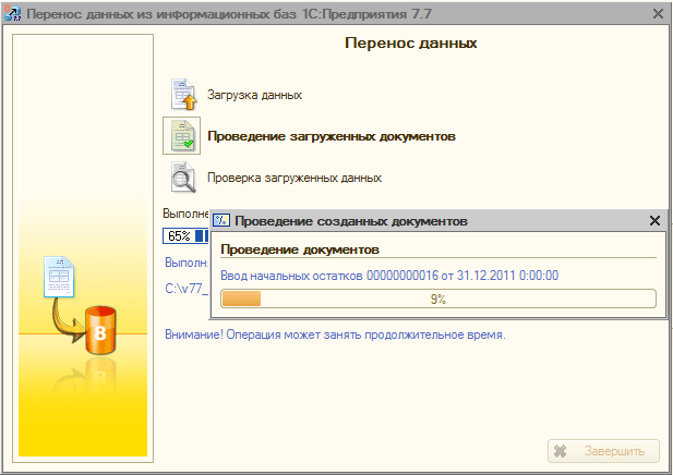 После загрузки документы проводятся (а при необходимости создаются и проводятся) документы закрытия месяца, выполняется проверка загруженных данных.